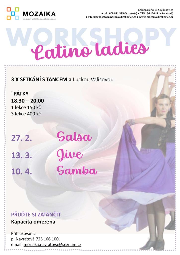 Mozaika – Centrum volného času Klimkovice zve na tři páteční Workshopy Latino Ladies pod vedením Lucky Vališové.