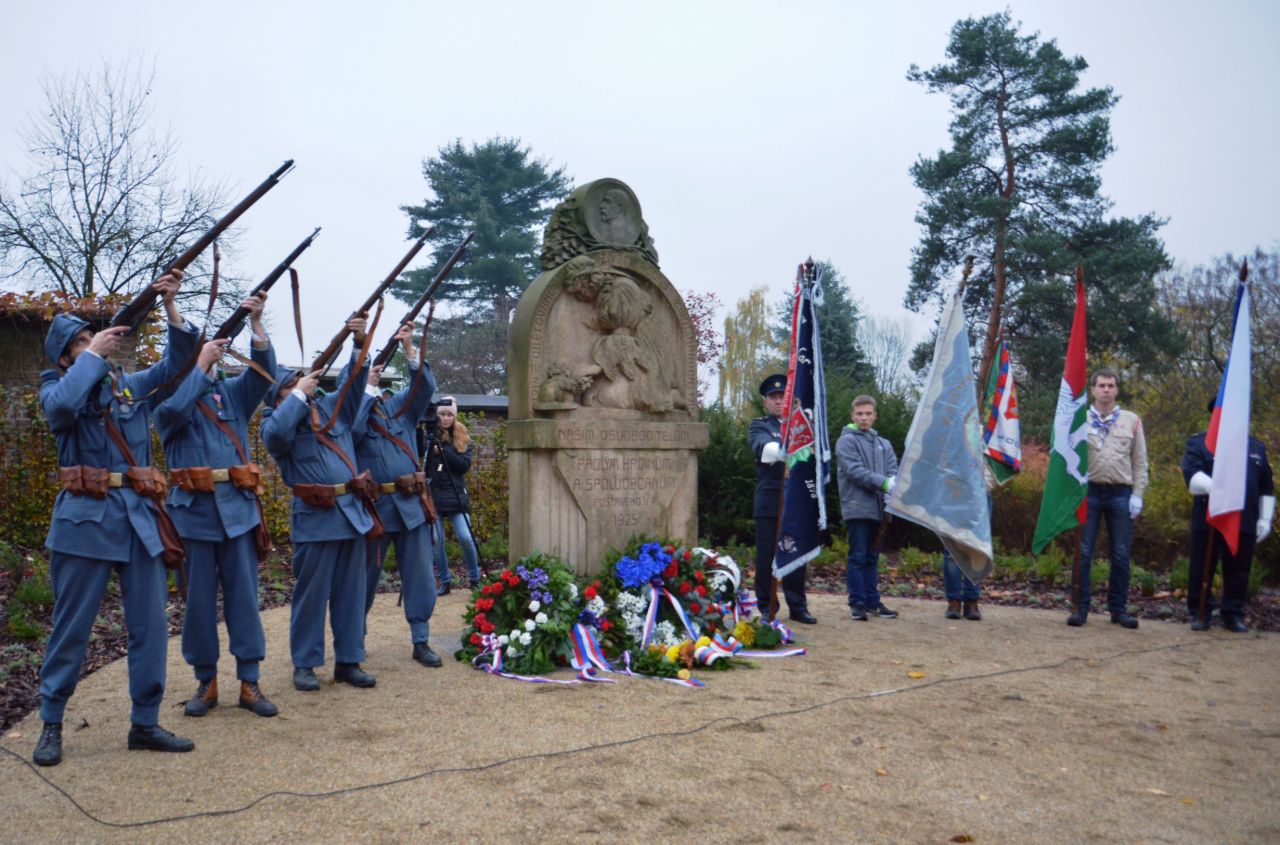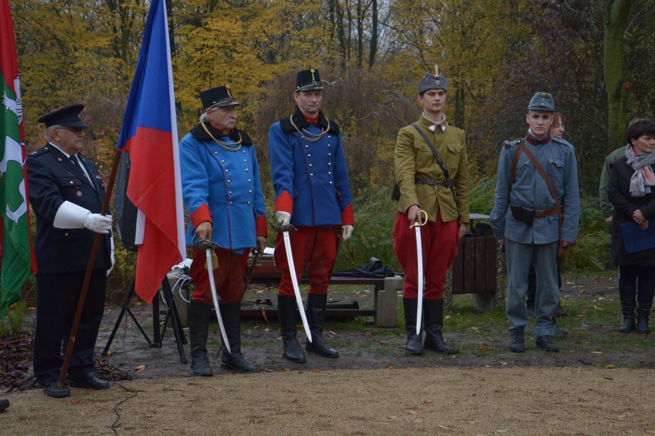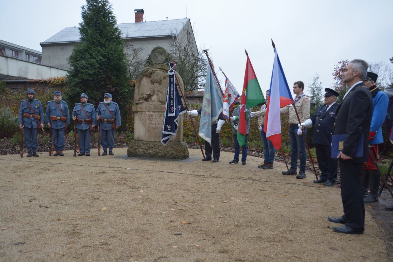 Fotografie jsou pořízeny u Pomníku obětem 1. světové války netradičně v den 100. výročí vzniku samostatného Československa (28. 10. 2018).